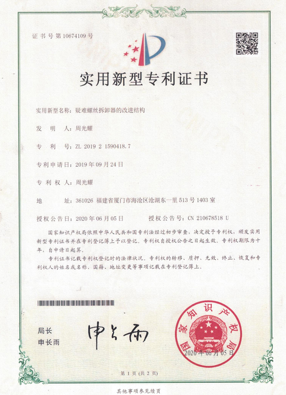 自主知識(shí)產(chǎn)權(quán),無需焊接、不用切割、不破壞任何部件,可無損拆缷市面上所有的防盜螺絲以及平面的普通螺絲。